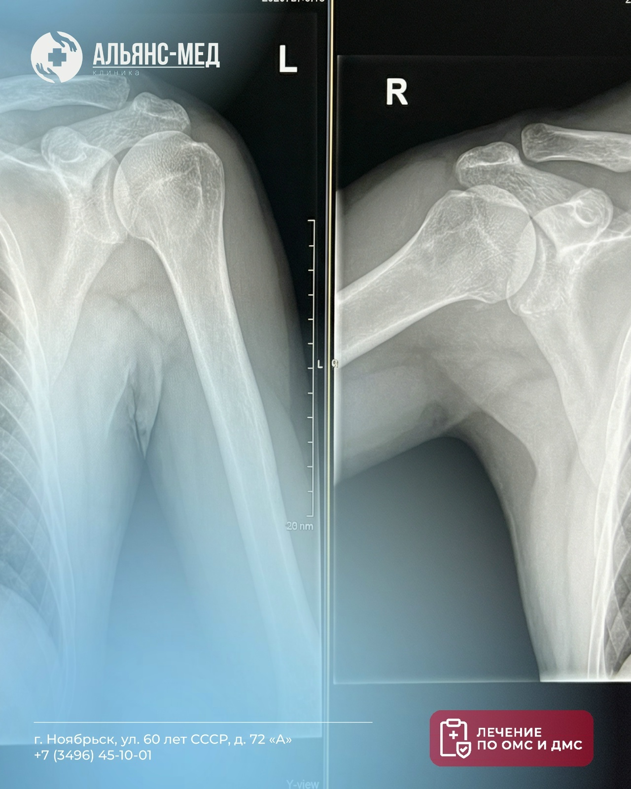 Боль в плече, скованность движений или последствия травмы не стоит игнорировать. Рентген — быстрый и информативный способ понять, что происходит внутри, и вовремя начать лечение